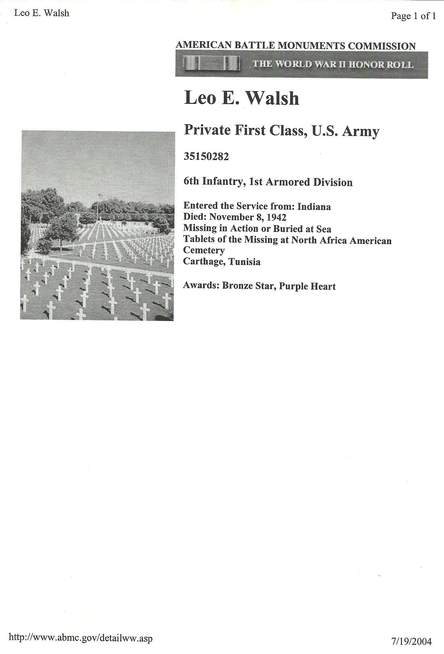 There is a cross in Carthage, Tunisia, honoring Leo E. Walsh.
